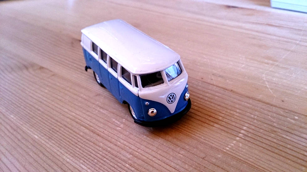 買い物に行くと催事場に出店が来ていたのだが、そこに何故かミニカーが並んでいた。大中小のサイズで並んでいたのが、このVWバスことType2。今回は小をワンコインで購入。この車種は根強い人気があり、つい最近までブラジルで生産されていた。さすがに、実車を手に入れるのは困難なので、ミニカーで我慢しとこう