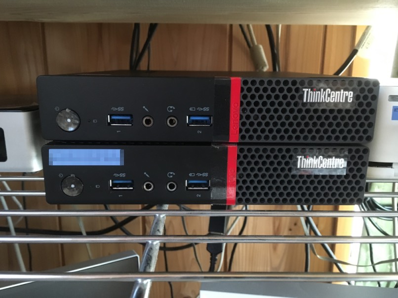 リプレース用として16式軽PCを制式化。M900Tinyとのハイローミックスで運用することに。Tinyはシリーズで筐体が共有されているのか、見た目にはほとんど区別が付かない(写真の上が600、下が900)。届いた時点で電源も入れずに中身のWin10Homeの入ったHDDを抜いて空のHDDを入れ替え、CentOS7を入れる。取り敢えず、sshやsambaなどリモートで操作できるようにしておいた。その他のサービスはおいおい設定しよう、、、