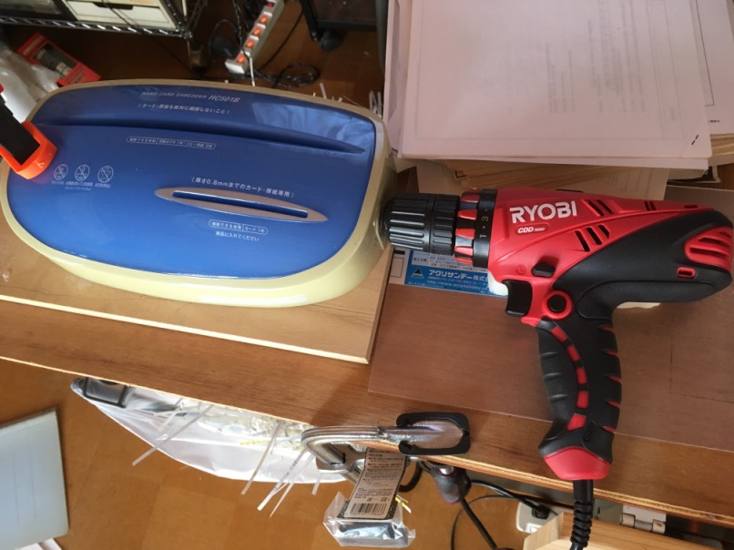 我が家にはもう何年も前に買った古い手回し式の手動シュレッダーしかない。これが数枚程度ならいいが、数百枚となると重労働だ。そこで、取手の軸に電動ドリルを付けて回せば楽ではないか?と思い付き、早速試してみると、これがまたすこぶる快調。ここにワットも驚く産業革命が我が家で起こる! 負荷を掛けないよう低速で、そしてトルクも一番軽いところにセットして、半日掛りで延々書類の破棄を行ってみると捗ること捗ること。ほぼ用意した書類を破棄し終えそうになった、、、その時に、ガコンッと抜けるような感じで空回りするように、、、分解すると歯車が磨耗して壊れてしまった、、、orz