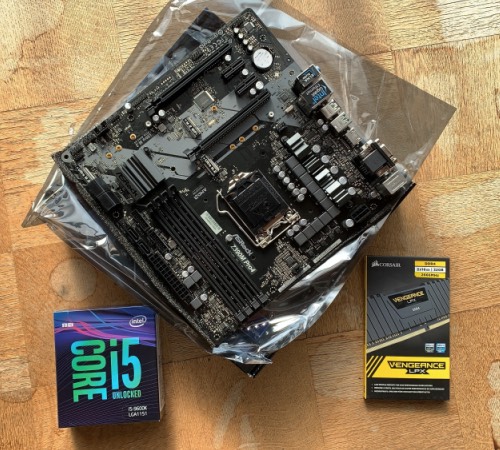 さすがに今となってはどうにも使えないので、中身を刷新することに。最後に自作したのは爆熱NetburstのP4だったと思う。世代が違い過ぎて今時の自作の勝手が分からず、Z390+Core(gen9)という大雑把なとこだけ決めてamazonで物色。まずM/Bを決めたら「この商品を買った人は、、、」に素直に従い、芋づる式でCPU、メモリをポチッた。早速、中身を入れ替えてみるものの、補助電源から何からスイッチ類のコネクタ形状が尽く異なり、CPUファンやクーラー以外は何一つ使えず。取り敢えず組み立ててみたものの電源スイッチが未接続なので、基盤のピンをショートさせて電源を入れるという暴挙に出る。画面に何も表示されないトラブルも何とかクリアして無事?動作。
