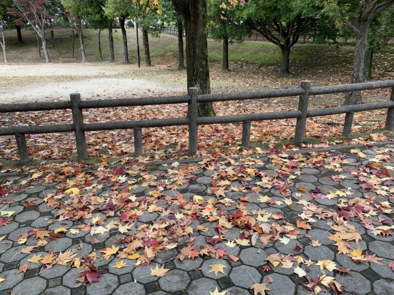 公園の落ち葉も紅葉