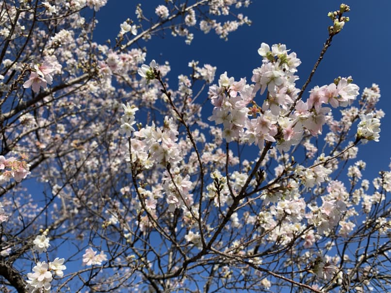 ちょっと時期が早いのでは?と思ったが、これだけ揃って咲いているのは初めてみた。よく正月の初詣時には四分咲とかまばらだったりする事が多いので驚いた。